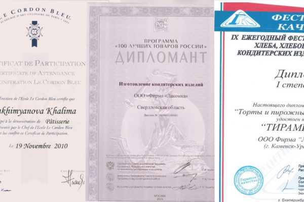 - дипломами 1 и 2 степени в областном фестивале хлеба, хлебобулочных и кондитерских изделий.